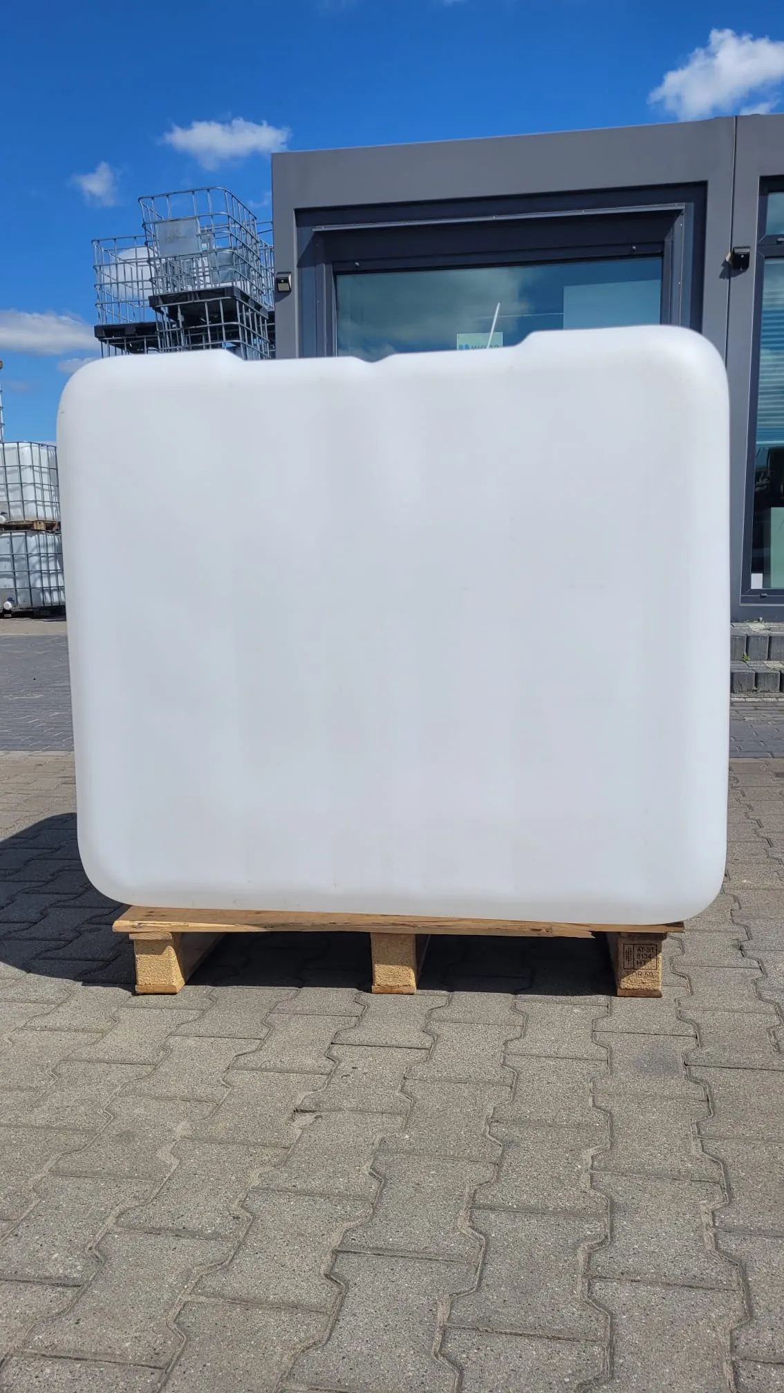Zbiornik wyposażony w dolny zawór do opróżniania kontenera oraz w górną, odkręcaną pokrywę do podłączenia do rynny. Możliwość wykorzystania pompy do opróżniania pojemnika przez otwór wlewowy.