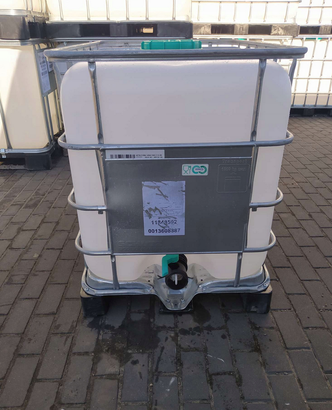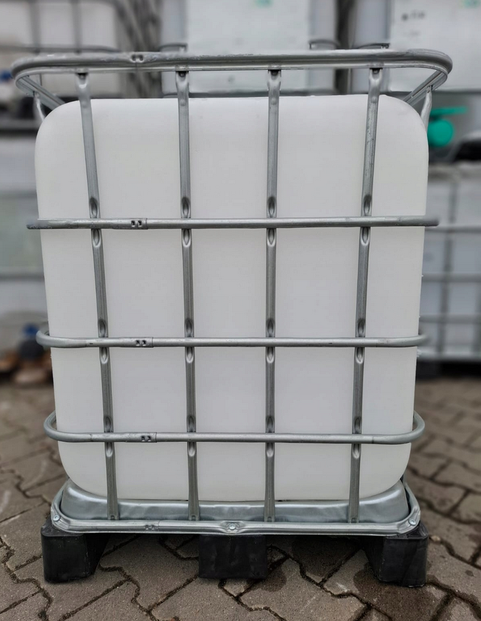Kontener IBC to produkt wielokrotnego użytku do transportu i tymczasowego magazynowania substancji płynnych. Transportowanie oraz składowanie ułatwia podstawa paletowa.