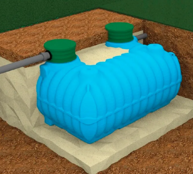 Przestrzeń między ścianami wykopu a zbiornikiem musi być wypełniona mieszanką piasku z cementem w proporcji 100kg cementu na 1m3 piasku
